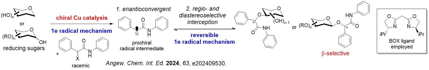We have discovered several asymmetric catalytic systems, spanning from rhodium, palladium and copper radical catalysis to concomittantly address multiple stereoselectivity challenges with a single C-O bond forming step in carbohydrate polyols.