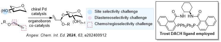 Differing from classical asymmetric catalysis, assimilating chiral catalysis on carbohydrate polyols uniquely involves tackling two difficult stereoselectivity challenges: (i) Site/Regioselectivity; (ii) Anomeric Selectivity.