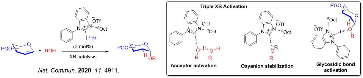 In 2019, our group reported our seminal work in the discovery of XB catalysis to construct glycosidic bonds via versatile strain-release glycosylations. Two defining discoveries were made: